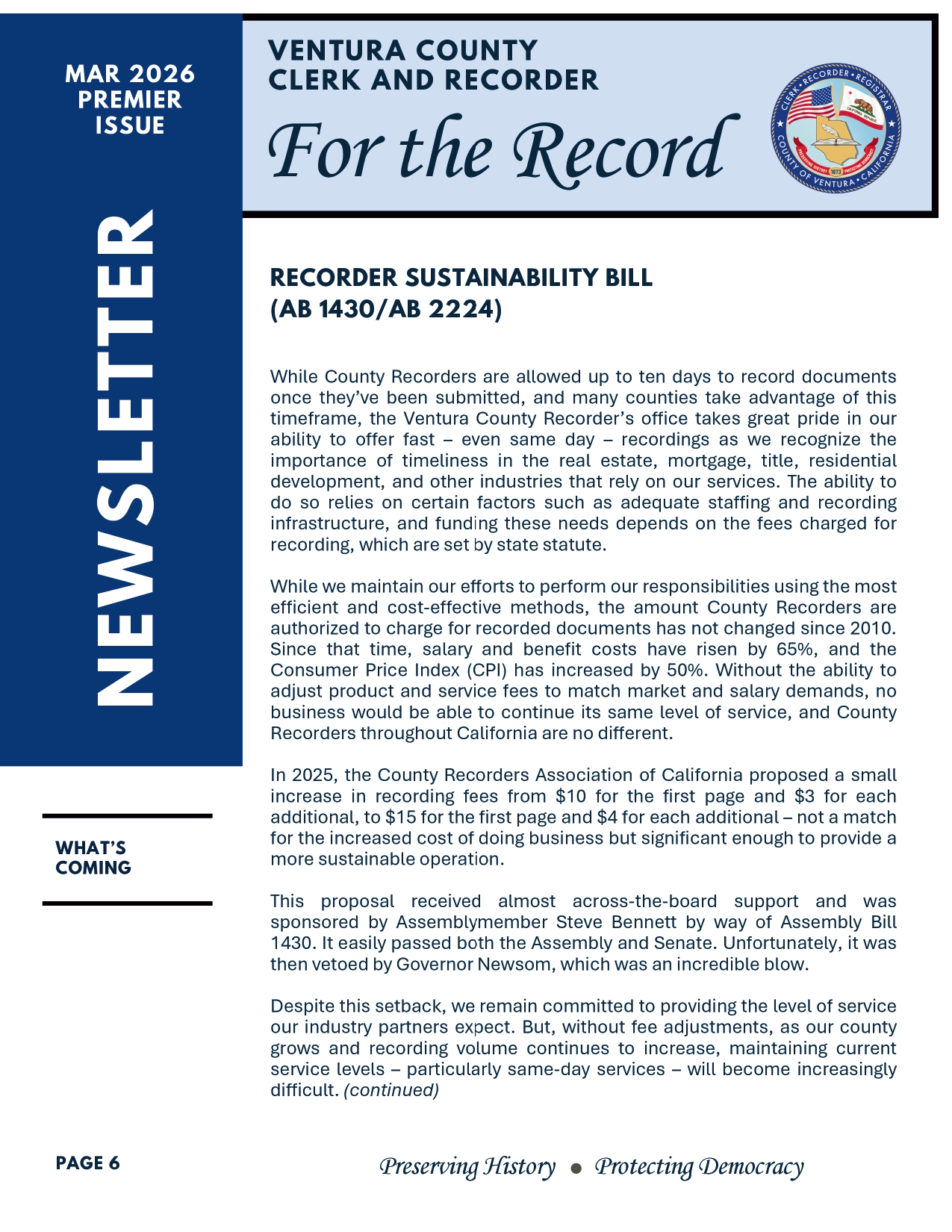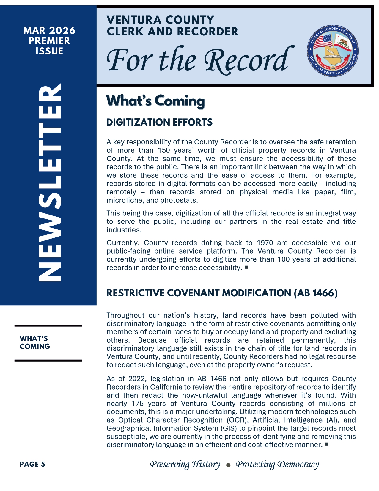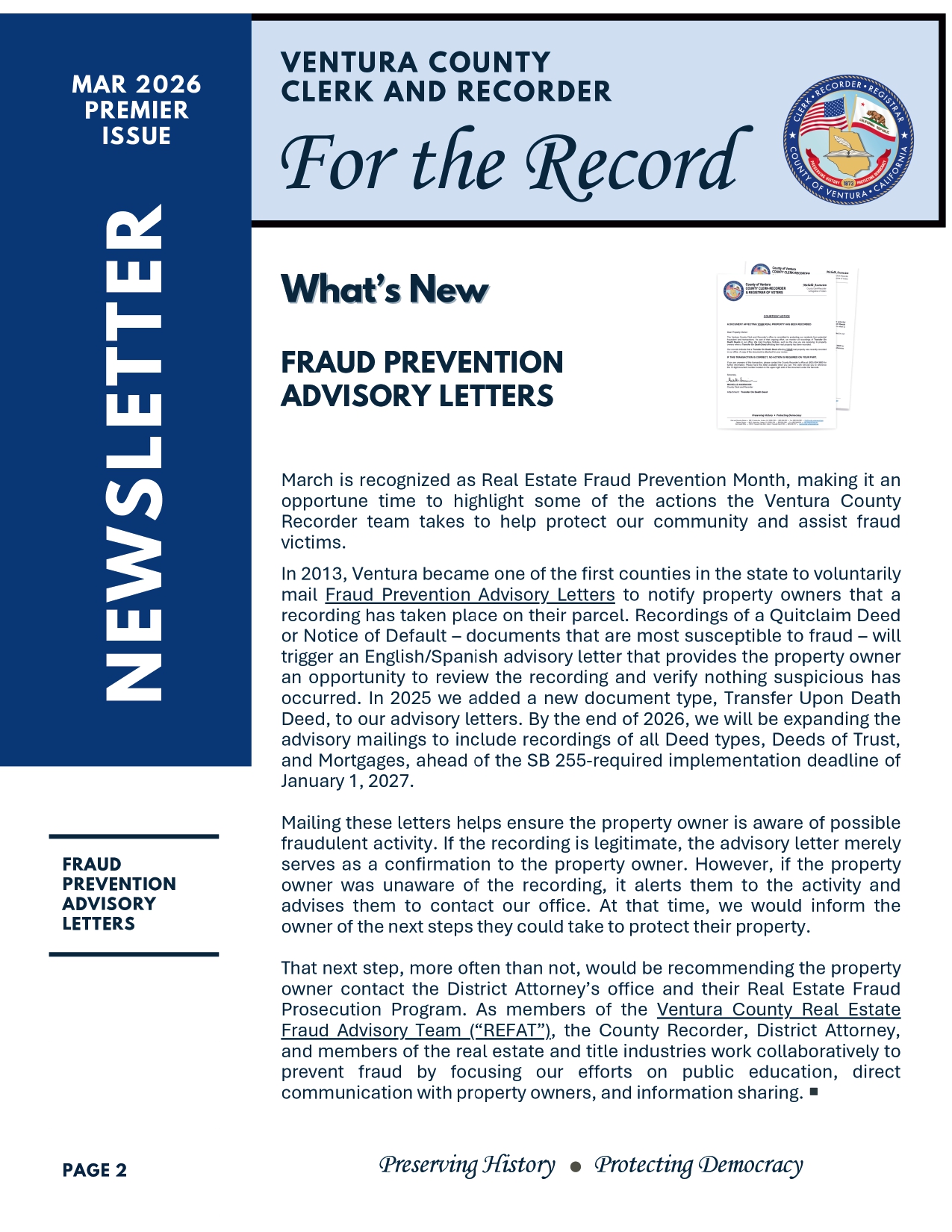 Get your copy of the Venture "For The Record" newsletter! Fraud is always top of mind for any real estate professional. Deeds are also a way to have a scam happen to you. Stay in the know. If you would like to join their newsletter email: clerk-recorder@venturacounty.gov