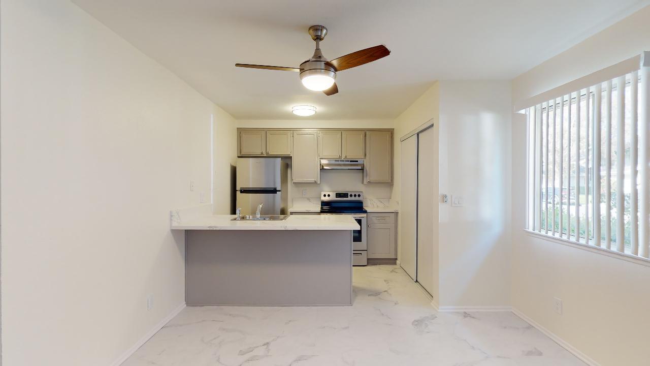 Large windows bathe the interiors in natural light, highlighting the tasteful finishes and thoughtful design all on one floor. The refreshed condo offers stainless steel appliances and laminate flooring The open space from kitchen to living room provides for easy entertaining. Nestled in a prime location, this condo offers easy access to both the tranquil shoreline and the bustling amenities of Port Hueneme.